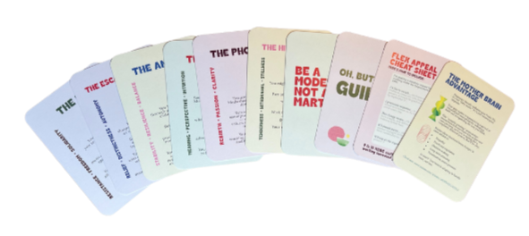 A beautifully designed deck of cards that works like a birth plan for work — helping you navigate the three big phases of working motherhood: